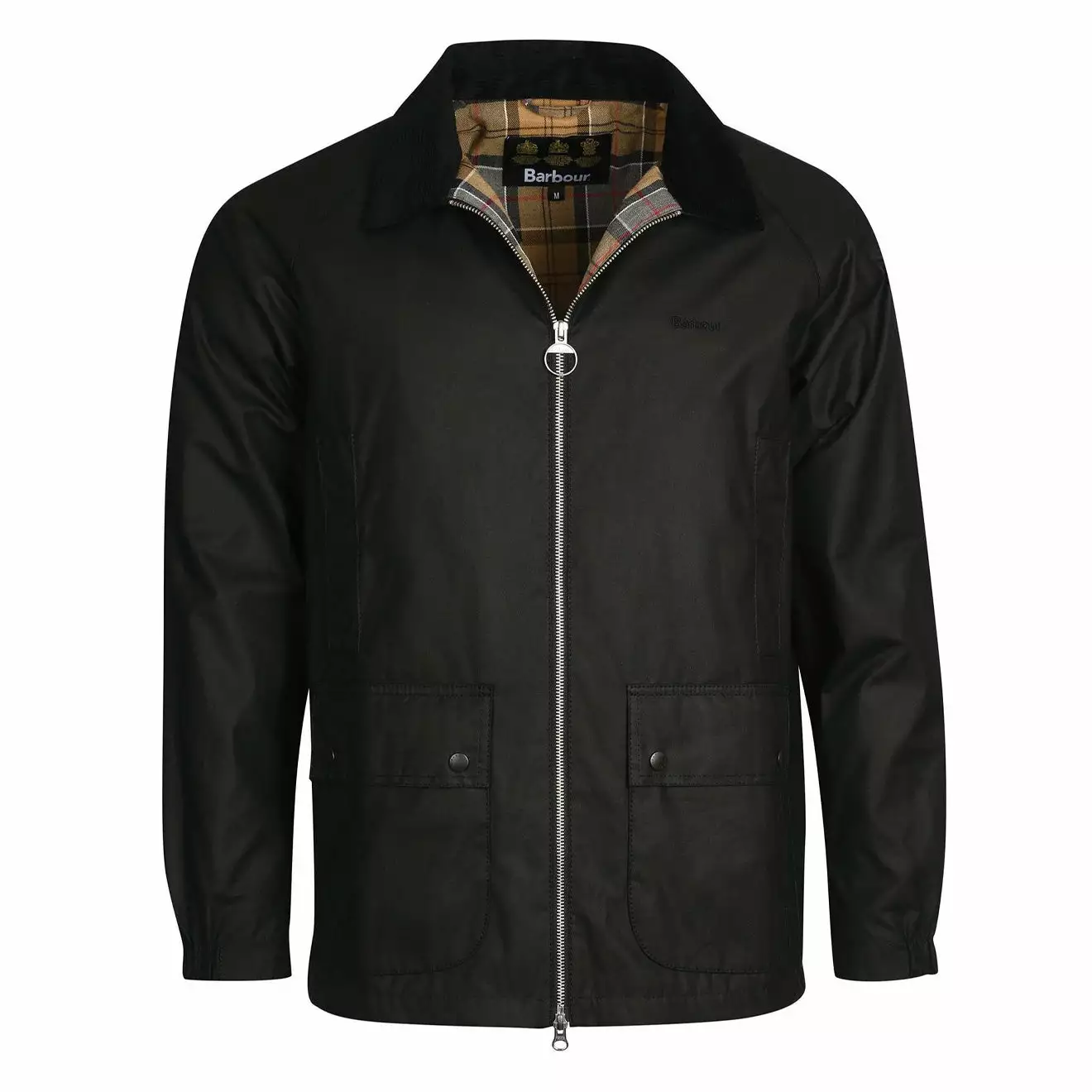 TheĀ Barbour Domus Wax Jacket offers a timeless design, with aĀ front zip fasteningĀ and a sit-down corduroy collar. It features two lower bellows pockets andĀ tonal embroideredĀ BarbourĀ logo.