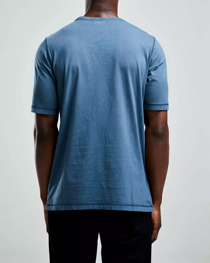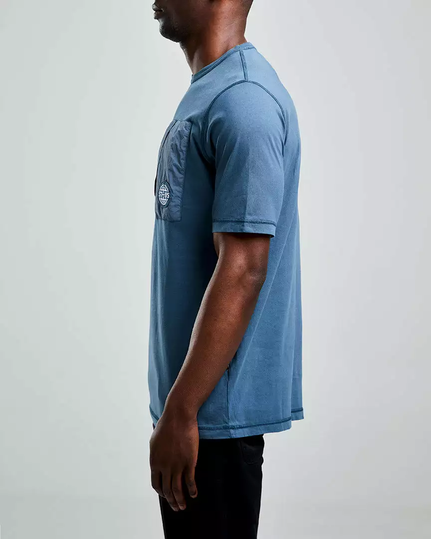 The Globe Pocket Tee has been garment dyed in a relaxed fit, manufactured from 100% cotton. It features an overdyed, a woven globe patch logo on the left chest, with integral signature seam stitching detail on the shoulders and sleeves, with a tonal pocket in recycled nylon to the front.